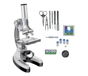Не дивлячись на те, що цей прилад рекомендований для дітей, він має потужну оптику, здатної збільшити зображення до 1200 крат. Подвійна підсвічування дозволить дослідити прозорі і непрозорі зразки. Широкий набір аксесуарів, зразків і препаратів забезпечать моментальний старт і зроблять дослідження ще більш захоплюючими.