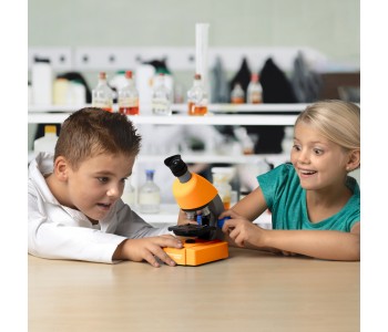 Bresser Junior 40x-640x (Base) являє собою сучасний мікроскоп для дитячого розвитку. Мікроскоп має револьверну головку з трьома об'єктивами, що дають в комплексі з зум-окуляром збільшення до 640х. У базовій комплектації мікроскоп має батареї, що дозволяють їм користуватися незалежно від того чи є поруч джерело живлення.