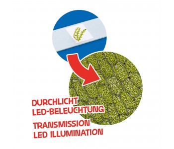 Підсвічування препарату здійснюється світлодіодним освітлювачем, що забезпечує достатню яскравість і більш правильну передачу кольору. Для харчування підсвічування надовго вистачає три батарей типу АА, що не обмежує використання мікроскопа в польових умовах.