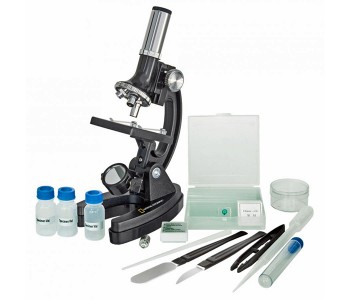 Дитячий мікроскоп National Geographic 300x-1200x рекомендований для дітей і підлітків у віці від 6 років. Мікроскоп укомплектований широким переліком аксесуарів, готових слайдів для перегляду, оснащений револьверної головкою з трьома об'єктивами, що дають в комплексі з окуляром збільшення 300х, 600х і 1200х. Освітлення зразків здійснюється як денним світлом, так і лампою розжарювання. Харчування здійснюється від змінних батарейок, що йдуть в комплекті.