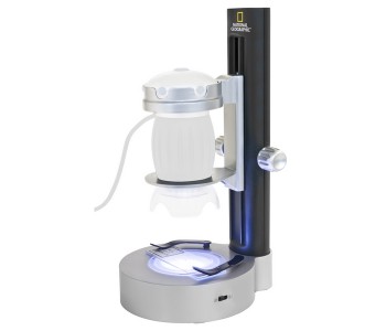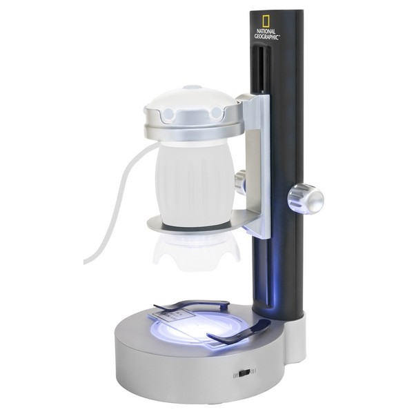 Дитячий мікроскоп National Geographic Universal 20x /200x при більш детальному розгляді відкриється як досить функціональний і цікавий прилад, який можна використовувати не тільки, як мікроскоп для спостереження біологічних мікро і макрообразцов, але і в якості веб-камери. Мікроскоп дозволяє знімати і зберігати фото і відео з роздільною здатністю 1,3 Мп. Спостереження можна проводити, закріпивши мікроскоп стаціонарно, або наводячи рукою на цікаву для частина об'єкта.