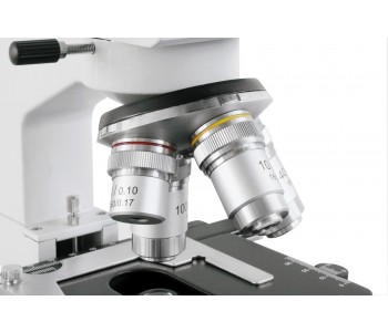 Дана модель біологічного мікроскопа надає максимальний комфорт для спостережень. Тринокулярна насадка, нахилена під кутом 30º, вільно обертається в горизонтальній площині і дозволяє проводити дослідження групі людей без переміщення приладу в площині, паралельно документуючи матеріали досліджень на цифрову камеру або, за допомогою PC-окуляра, відразу на персональний комп'ютер.