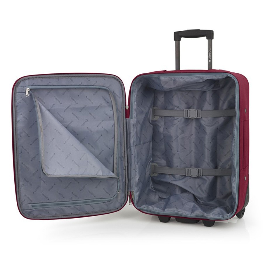 Серія валіз Gabol Week Cabin універсальна і розрахована для перевезення багажу в якості ручної поклажі. Зовнішні габаритні розміри відповідають вимогам, що висуваються більшістю популярними авіакомпаніями, які надають бюджетні перевезення (МАУ, UTair, WindRose, BelAvia, EasyJet, RyanAir і ін.). Чемодан Gabol Week Cabin має просту і надійну конструкцію, н А фасадної частини розміщений містка кишеня на блискавки, а на тильній два просторих кишені і вікно для інформації про власника багажу. Внутрішній об'єм має ремені для фіксації речей всередині, що дозволяє зберегти речі на своїх місцях. З валізою Gabol Week Cabin подорожувати легко і практично.