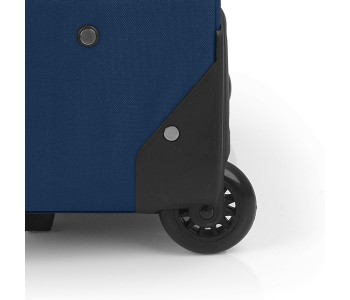 Чемодан оснащений парою надійних роликових коліс. Колеса виготовлені з високотемпературного термопластичного поліуретану (TPU). Матеріал володіє міцністю порівнянної з пластиком, гнучкістю силікону, а так само має підвищену стійкість до перепадів температур. Відмінною особливістю коліс з TPU матеріалу є зниження шуму до мінімуму при коченні валізи по нерівній поверхні. Завдяки стійкості до стирання матеріал коліс відрізняється тривалим терміном експлуатації.