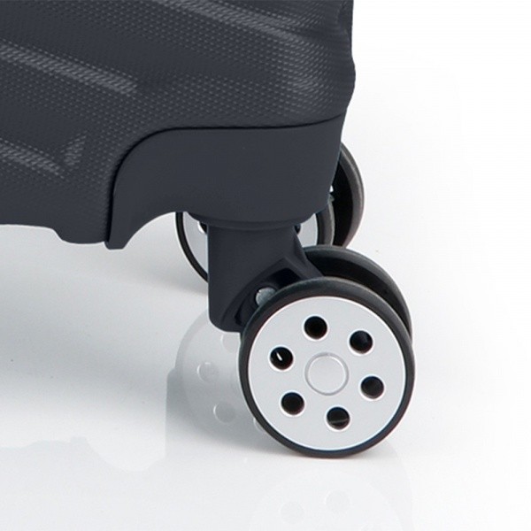 Модель оснащена чотирма повноповоротними, спареними колесами з можливістю незалежного розвороту кожного колеса на 360 °. Системою передбачено рівномірне перерозподілу навантаження на кожне колесо, що в свою чергу сприяє плавному коченню і маневреності валізи, докладаючи при цьому мінімум зусиль.