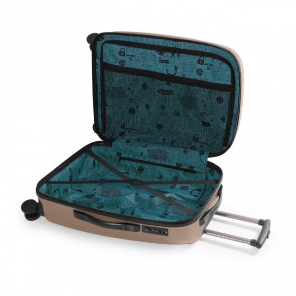 Колекція валіз Gabol Paradise виконана з міцного і довговічного матеріалу - ABS-пластика, що дуже важливо для валіз, що перевозяться в багажних відділеннях. Внутрішній об'єм розділений перегородкою на два відділення і має ремені для фіксації речей всередині. Чемодан легкий, маневрений і зручний для транспортування.