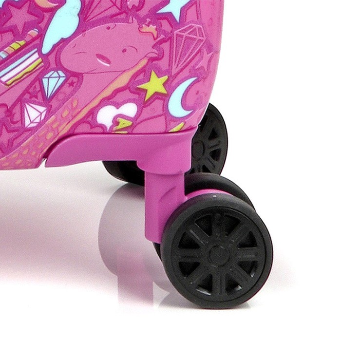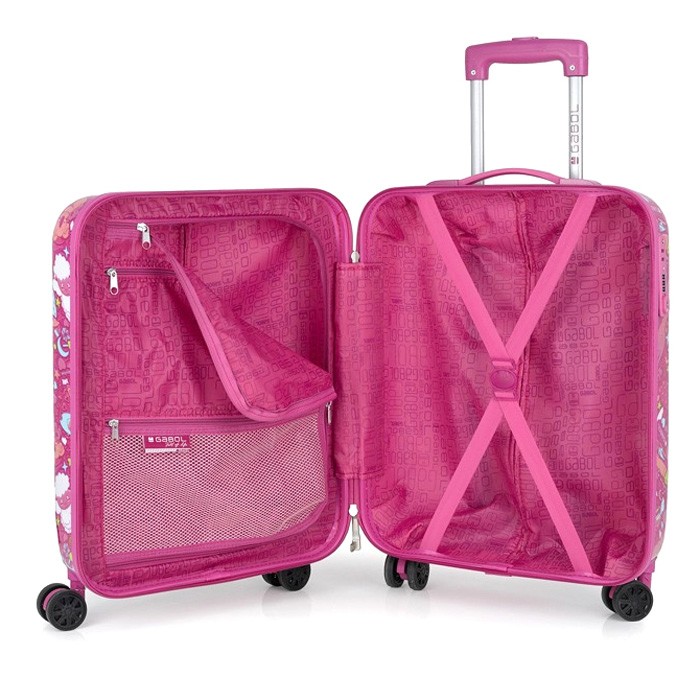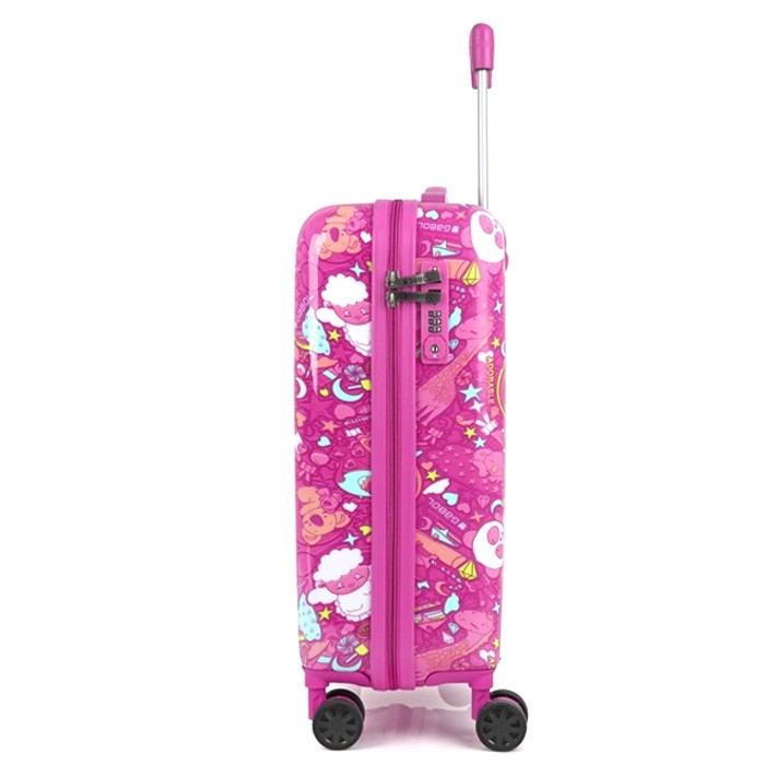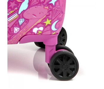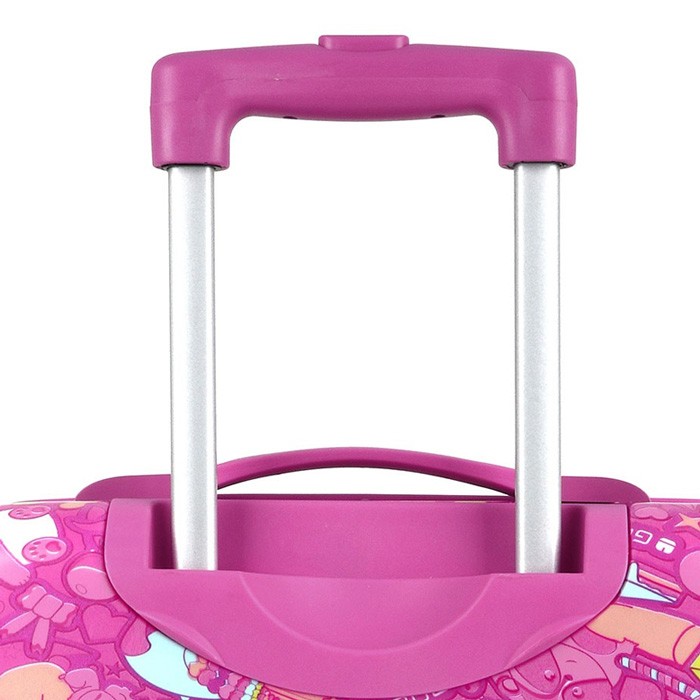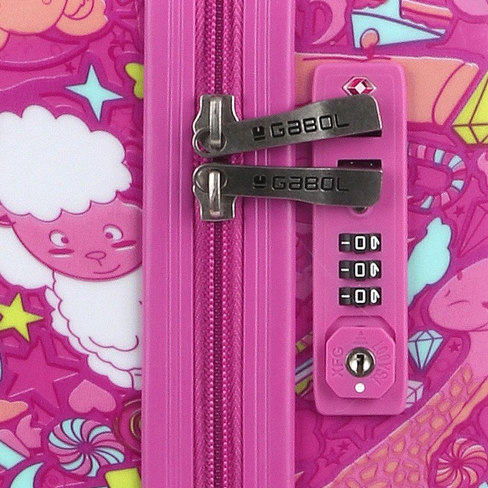 Дитячий валізу Колекції Toy від компанії Gabol для тих дівчаток, які люблять рожевий колір і обожнюють милих тварин. Корпус виконаний з міцного і стійкого до деформацій матеріалу ABS пластику з додаванням полікарбонату, що важливо для валіз перевозяться в багажних відділеннях. Чотири спарених колеса дозволяють легко управляти валізою маленької мандрівниці і не відчувати тягар багажу. Внутрішній об'єм розділений перегородкою на два відділення і має ремені для фіксації речей всередині. Чемодан обладнаний фірмовим кодовим замком з функцією митного огляду TSA. Яскравий дизайн дитячої валізи Toy не відстаючи байдужим нікого.
