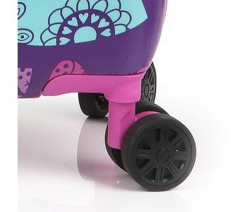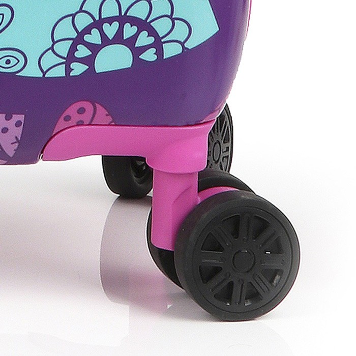 Чемодан оснащений чотирма повноповоротними, спареними колесами з можливістю незалежного розвороту кожного колеса на 360 °. Системою передбачено рівномірне перерозподілу навантаження на кожне колесо, що в свою чергу сприяє плавному коченню і маневреності валізи, докладаючи при цьому мінімум зусиль. Колеса виготовлені з високотемпературного термопластичного поліуретану (TPU). Матеріал володіє міцністю порівнянної з пластиком, гнучкістю силікону, а так само має підвищену стійкість до перепадів температур. Відмінною особливістю коліс з TPU матеріалу є зниження шуму до мінімуму при коченні валізи по нерівній поверхні. Завдяки стійкості до стирання матеріал коліс відрізняється тривалим терміном експлуатації.