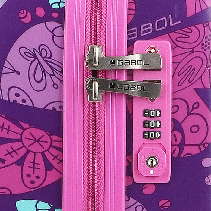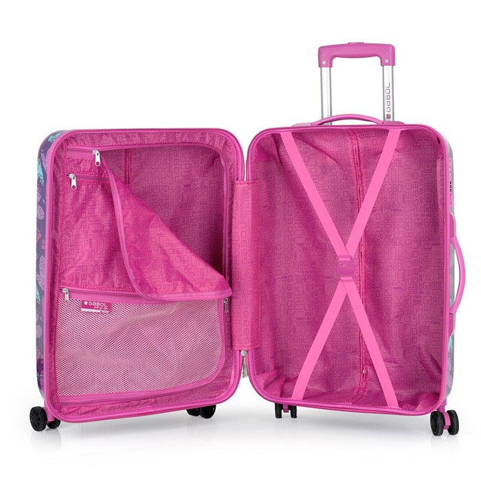 Дитячий валізу колекції Dream від компанії Gabol яскравий і сміливий, як дитяча віра в мрію. Корпус виконаний з міцного і стійкого до деформацій матеріалу ABS пластику з додаванням полікарбонату, що важливо для валіз перевозяться в багажних відділеннях. Чотири спарених колеса дозволяють легко управляти валізою маленької мандрівниці і не відчувати тягар багажу. Внутрішній об'єм розділений перегородкою на два відділення і має ремені для фіксації речей всередині. Чемодан обладнаний фірмовим кодовим замком з функцією митного огляду TSA. Подорож з валізою Dream подарує найкращі спогади.