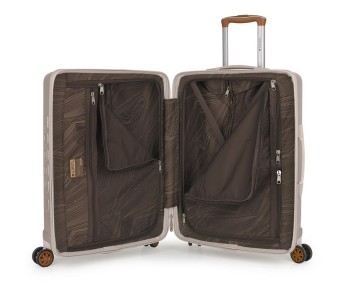 - Чемодан розділений двома перегородками на блискавках на два основних відділення. Перегородки має сітчасті кишені на блискавках (один великий кишеню і два середнього розміру)