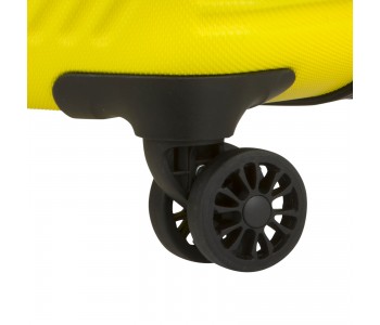Чемодан оснащений чотирма спареними Повноповоротними колесами з можливістю незалежного розвороту кожного колеса на 360 °. Системою передбачено рівномірне перерозподілу навантаження на кожне колесо, що в свою чергу сприяє плавному коченню і маневреності валізи, докладаючи при цьому мінімум зусиль. Колеса виготовлені з високотемпературного термопластичного поліуретану (TPU). Матеріал володіє міцністю порівнянної з пластиком, гнучкістю силікону, а так само має підвищену стійкість до перепадів температур. Відмінною особливістю коліс з TPU матеріалу є зниження шуму до мінімуму при коченні валізи по нерівній поверхні. Завдяки стійкості до стирання матеріал коліс відрізняється тривалим терміном експлуатації.