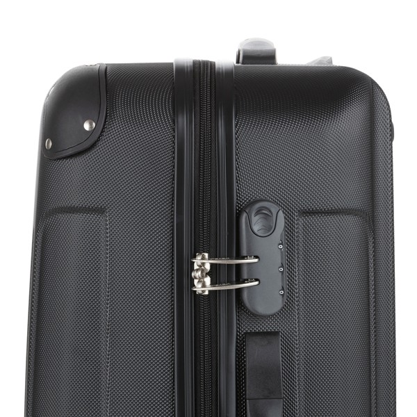 < li> Пластикові ніжки на бічній частині валізи для додання стійкості. - Вбудований кодовий замком.