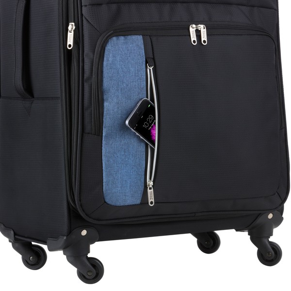 Чемодан оснащений чотирма повноповоротними колесами з можливістю незалежного розвороту кожного колеса на 360 °. Системою передбачено рівномірне перерозподілу навантаження на кожне колесо, що в свою чергу сприяє плавному коченню і маневреності валізи, докладаючи при цьому мінімум зусиль. Колеса виготовлені з високотемпературного термопластичного поліуретану (TPU). Матеріал володіє міцністю порівнянної з пластиком, гнучкістю силікону, а так само має підвищену стійкість до перепадів температур. Відмінною особливістю коліс з TPU матеріалу є зниження шуму до мінімуму при коченні валізи по нерівній поверхні. Завдяки стійкості до стирання матеріал коліс відрізняється тривалим терміном експлуатації.