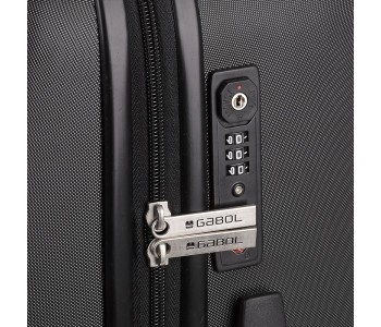 Колекція валіз Gabol Fit виконана з міцного і довговічного матеріалу - ABS-пластика, що дуже важливо для валіз, що перевозяться в багажних відділеннях. Модель відповідає мінімально обмеженим розмірами ручної поклажі, затвердженим бюджетними міжнародними авіакомпаніями при авіаперельотах. Внутрішній об'єм розділений перегородкою на два відділення і має ремені для фіксації речей всередині. Чемодан обладнаний фірмовим кодовим замком з функцією митного огляду TSA. Чемодан легкий, маневрений і зручний для транспортування.