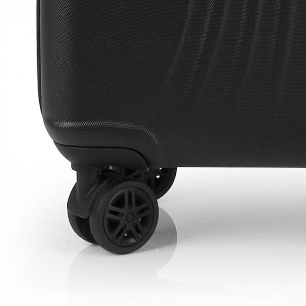 Чемодан оснащений чотирма повноповоротними, спареними колесами з можливістю незалежного розвороту кожного колеса на 360 °. Системою передбачено рівномірне перерозподілу навантаження на кожне колесо, що в свою чергу сприяє плавному коченню і маневреності валізи, докладаючи при цьому мінімум зусиль. Колеса виготовлені з високотемпературного термопластичного поліуретану (TPU). Матеріал володіє міцністю порівнянної з пластиком, гнучкістю силікону, а так само має підвищену стійкість до перепадів температур. Відмінною особливістю коліс з TPU матеріалу є зниження шуму до мінімуму при коченні валізи по нерівній поверхні. Завдяки стійкості до стирання матеріал коліс відрізняється тривалим терміном експлуатації.