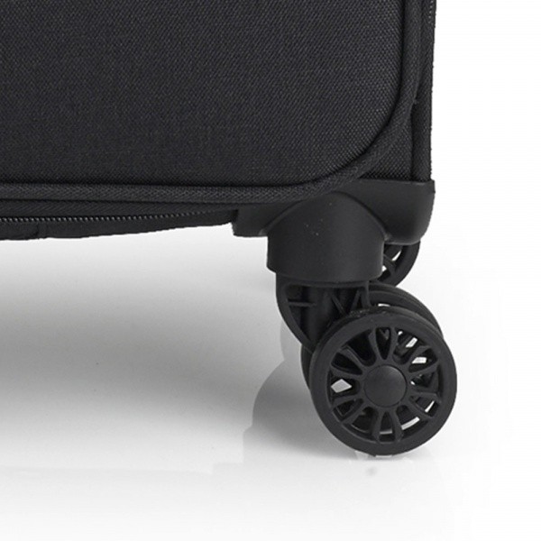 Чемодан оснащений чотирма спареними роликовими колесами з високотемпературного термопластичного поліуретану (TPU). Матеріал володіє міцністю порівнянної з пластиком, гнучкістю силікону, а так само має підвищену стійкість до перепадів температур. Відмінною особливістю коліс з TPU матеріалу є зниження шуму до мінімуму при коченні валізи по нерівній поверхні. Завдяки стійкості до стирання матеріал коліс відрізняється тривалим терміном експлуатації.