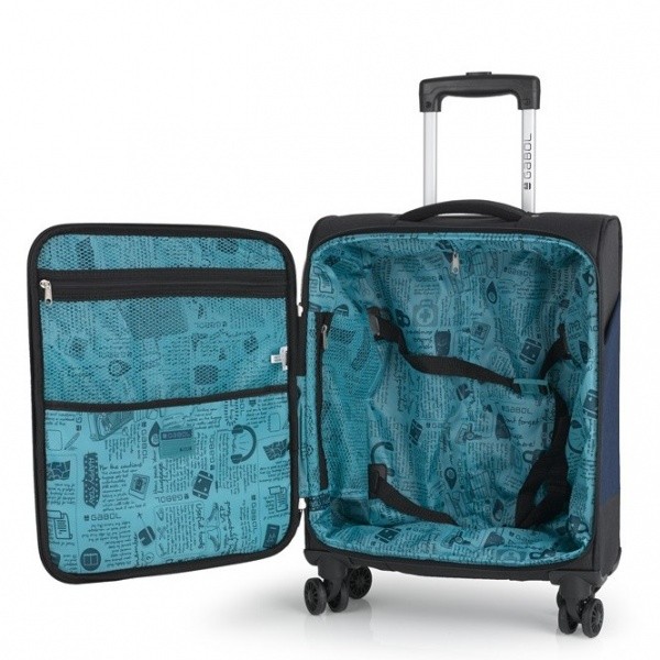 Чемодан Gabol серії Saga оснащений кодовим замком системи TSA для підвищення безпеки. Каркас дна легкий і міцний. На фасадній частині розміщений містка кишеня на блискавки. Внутрішній об'єм має ремені для фіксації речей всередині. Чемодан відповідає вимогам, що висуваються більшістю популярних міжнародних і внутрішніх бюджетних авіаперевізників до розмірів ручної поклажі (МАУ, UTair, BelAvia, WindRose, EasyJet, RyanAir і ін.). Чемодан легкий, маневрений і зручний для транспортування.