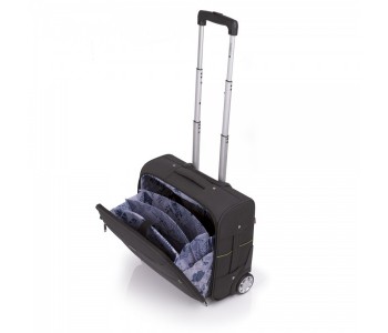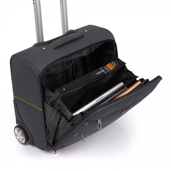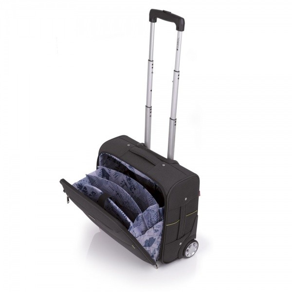 Чемодан на колесах Gabol Vegas Pilot розроблений відповідно до обмежень на провезення ручної поклажі, висунутими найбільш популярними авіакомпаніями, які надають бюджетні перевезення (МАУ, UTair, WindRose, BelAvia і ін.). При авіаперельотах, важливо щоб всі необхідні і найбільш цінні речі завжди знаходилися з Вами під час польоту. У валізі передбачено відділ для транспортування лептопа з діагоналлю 15.6. Чемодан можна переміщати на колесах або в руках за ручку. На видвежной, телескопічної ручки зручно закріпити ручний багаж.