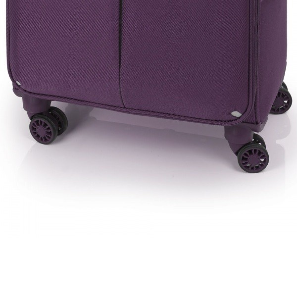Чемодан оснащений чотирма спареними роликовими колесами з високотемпературного термопластичного поліуретану (TPU). Матеріал володіє міцністю порівнянної з пластиком, гнучкістю силікону, а так само має підвищену стійкість до перепадів температур. Відмінною особливістю коліс з TPU матеріалу є зниження шуму до мінімуму при коченні валізи по нерівній поверхні. Завдяки стійкості до стирання матеріал коліс відрізняється тривалим терміном експлуатації.