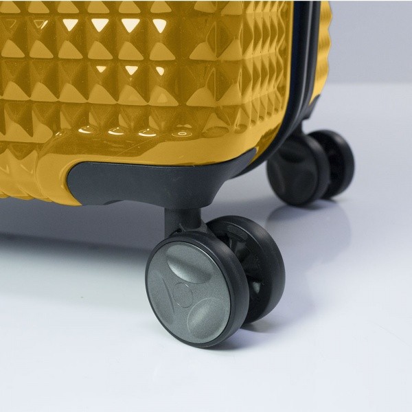 Чемодан оснащений чотирма повноповоротними, спареними колесами з можливістю незалежного розвороту кожного колеса на 360 °. Системою передбачено рівномірне перерозподілу навантаження на кожне колесо, що в свою чергу сприяє плавному коченню і маневреності валізи, докладаючи при цьому мінімум зусиль. Колеса виготовлені з високотемпературного термопластичного поліуретану (TPU). Матеріал володіє міцністю порівнянної з пластиком, гнучкістю силікону, а так само має підвищену стійкість до перепадів температур. Відмінною особливістю коліс з TPU матеріалу є зниження шуму до мінімуму при коченні валізи по нерівній поверхні. Завдяки стійкості до стирання матеріал коліс відрізняється тривалим терміном експлуатації.