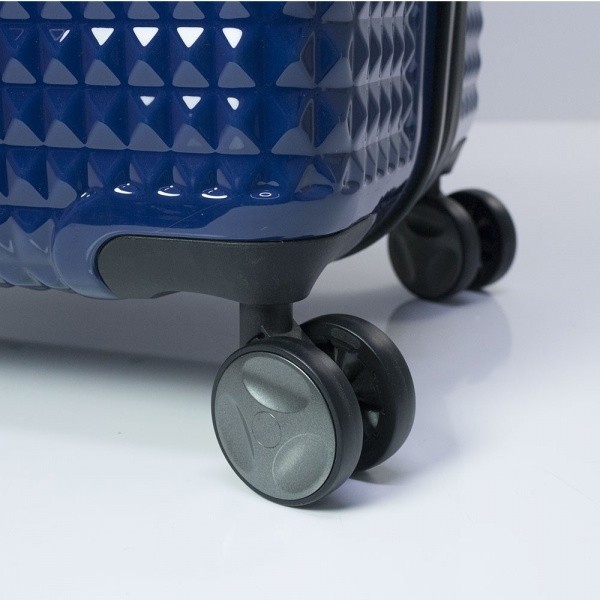 Чемодан оснащений чотирма повноповоротними, спареними колесами з можливістю незалежного розвороту кожного колеса на 360 °. Системою передбачено рівномірне перерозподілу навантаження на кожне колесо, що в свою чергу сприяє плавному коченню і маневреності валізи, докладаючи при цьому мінімум зусиль. Колеса виготовлені з високотемпературного термопластичного поліуретану (TPU). Матеріал володіє міцністю порівнянної з пластиком, гнучкістю силікону, а так само має підвищену стійкість до перепадів температур. Відмінною особливістю коліс з TPU матеріалу є зниження шуму до мінімуму при коченні валізи по нерівній поверхні. Завдяки стійкості до стирання матеріал коліс відрізняється тривалим терміном експлуатації.