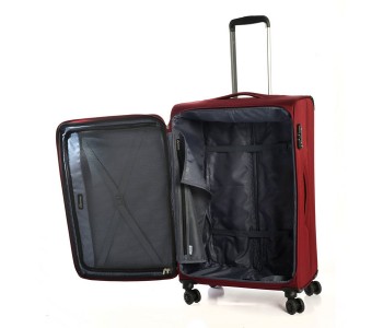 - SOFT SHELL POLYESTER 600D - Тканину з поліестеру з товщиною нитки 600D, що має гладку поверхню з відблиском, і з внутрішнє поліуретанове покриття, що захищає вміст валізи від намокання під час дощу середньої інтенсивності. Також тканина має гарну зносостійкість, і не руйнується під дією ультрафіолетового випромінювання.