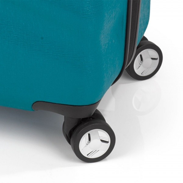 Чемодан оснащений чотирма повноповоротними, спареними колесами з можливістю незалежного розвороту кожного колеса на 360 °. Системою передбачено рівномірне перерозподілу навантаження на кожне колесо, що в свою чергу сприяє плавному коченню і маневреності валізи, докладаючи при цьому мінімум зусиль.