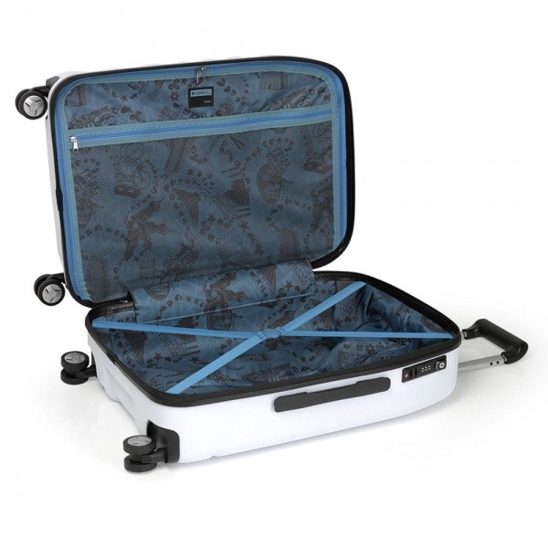 Внутрішній об'єм валізи має ремені для фіксації речей і карман на блискавці. Модель оснащена кодовим замком системи TSA для підвищення безпеки. Чемодан виглядає стильно, конструкція досить легка і зручна в експлуатації.