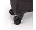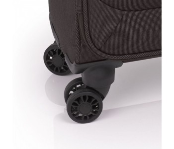 Чемодан оснащений чотирма спареними роликовими колесами з високотемпературного термопластичного поліуретану (TPU). Матеріал володіє міцністю порівнянної з пластиком, гнучкістю силікону, а так само має підвищену стійкість до перепадів температур. Відмінною особливістю коліс з TPU матеріалу є зниження шуму до мінімуму при коченні валізи по нерівній поверхні. Завдяки стійкості до стирання матеріал коліс відрізняється тривалим терміном експлуатації.