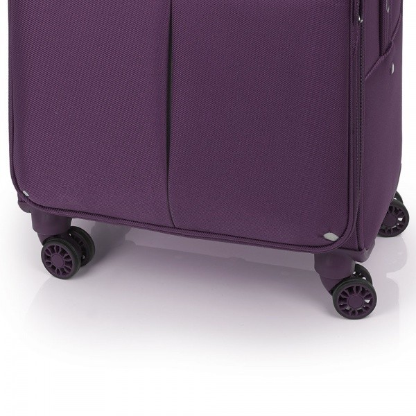 Чемодан оснащений чотирма спареними роликовими колесами з високотемпературного термопластичного поліуретану (TPU). Матеріал володіє міцністю порівнянної з пластиком, гнучкістю силікону, а так само має підвищену стійкість до перепадів температур. Відмінною особливістю коліс з TPU матеріалу є зниження шуму до мінімуму при коченні валізи по нерівній поверхні. Завдяки стійкості до стирання матеріал коліс відрізняється тривалим терміном експлуатації.