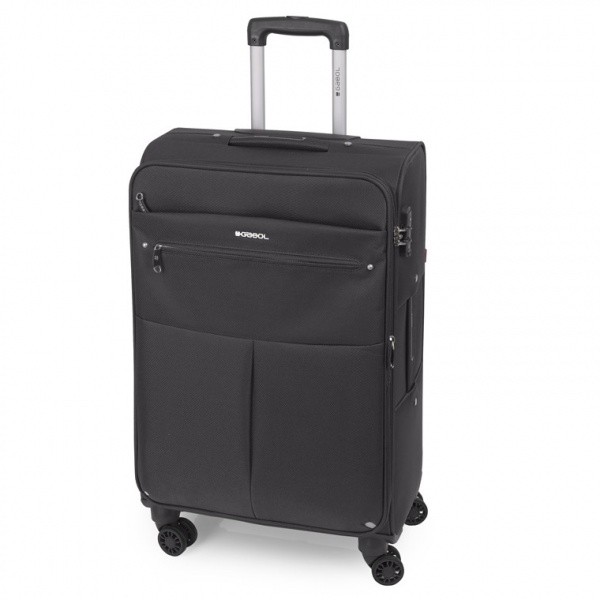 Чемодан Gabol серії Daisy оснащений кодовим замком системи TSA для підвищення безпеки. Каркас дна легкий і міцний завдяки стільникового структурі будови. На фасадній частині розміщені два містких кишені на блискавці. Внутрішній об'єм розділений перегородкою на два відділення і має ремені для фіксації речей всередині. Чемодан легкий, маневрений і зручний для транспортування.