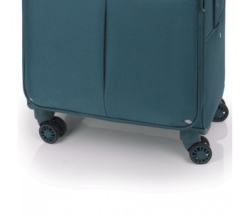 Чемодан оснащений чотирма спареними роликовими колесами з високотемпературного термопластичного поліуретану (TPU). Матеріал володіє міцністю порівнянної з пластиком, гнучкістю силікону, а так само має підвищену стійкість до перепадів температур. Відмінною особливістю коліс з TPU матеріалу є зниження шуму до мінімуму при коченні валізи по нерівній поверхні. Завдяки стійкості до стирання матеріал коліс відрізняється тривалим терміном експлуатації.