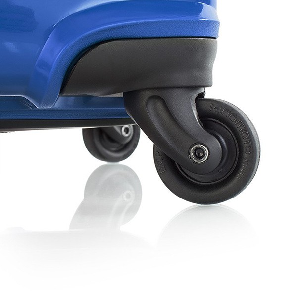 Чемодан оснащений чотирма повноповоротними японськими колесами Hinomoto ™ з можливістю незалежного розвороту кожного колеса на 360 °. Патентірованний японські розробки від Hinomoto ™ гарантують високу міцність і довговічність. Для накату, до валізи з колесами від Hinomoto ™, прикладається сила в два рази менше в порівнянні з валізою на звичайних колесах. Системою передбачено рівномірне перерозподілу навантаження на кожне колесо, що в свою чергу сприяє плавному коченню і маневреності валізи, докладаючи при цьому мінімум зусиль.