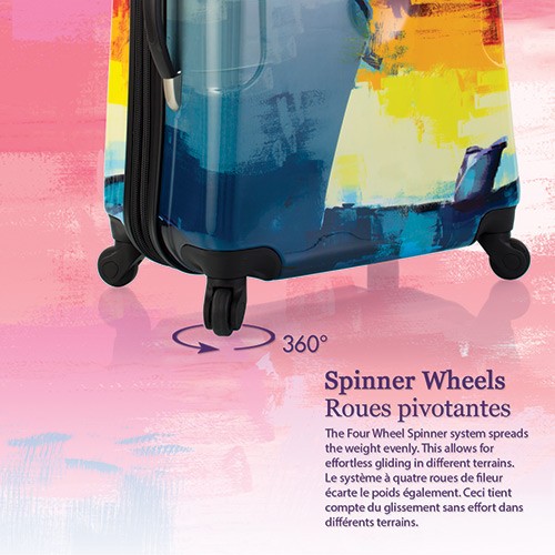 Чемодан оснащений чотирма повноповоротними колі самі системи Spinner з під Зможності незалежного розвороту кожного колеса на 360 °. Системою передбачено рівномірне перерозподілу навантаження на кожне колесо, що в свою чергу сприяє плавному коченню і маневреності валізи, докладаючи при цьому мінімум зусиль.