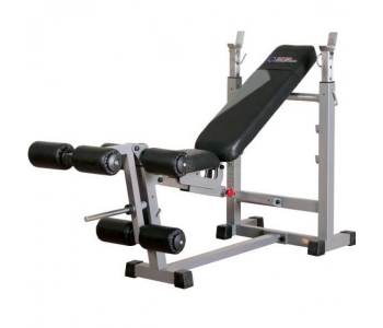Лава універ рсальная зі стійками призначена для вправ зі штангою, з приставкою для ніг (для тренування м'язів ніг і черевного преса) і лава Скотта (для тренування біцепса)