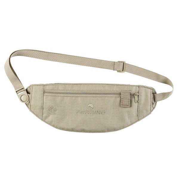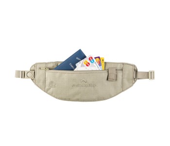 Ferrino Aere RFID - спеціальна потайна поясна сумка, яка дозволяє в походах, поїздках зберігати документи, банківські картки, ключі, смартфон і гроші при собі, а також захистити банківські карти від крадіжки грошей з допомогою RFID-захисту. Сумка дуже тонка, її без проблем можна носити під одягом. Оскільки сумка безпосередньо може контактувати з шкірою - для її виробництва обраний натуральний екологічний матеріал - бавовна, а зворотна сторона зроблена сітчастої. Матеріал досить міцний, оскільки має структуру переплетення ripstop. Для більшої зручності поясний ремінь має еластичні вставки, завдяки чому не передавить пояс і не натирає. Сумка має одне велике відділення в якому без проблем можна розмістити паспорт, п'ятидюймовий смартфон і інші важливі дрібниці.