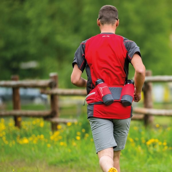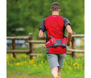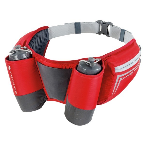 Ferrino X-Hyper Red - спортивна поясна сумка, призначена для забезпечення водою бігунів або велосипедистів. Сумка оснащена двома об'ємними кишенями для фляг (фляги в комплект не входять), такого запасу води буде цілком достатньо для тривалих пробіжок і трейлраннінга. У трьох кишенях, два з яких закриваються на блискавку, можна розмістити ключі, для чого передбачений карабін, документи, гроші, сонцезахисні окуляри, смартфон з діагоналлю до 6 дюймів і інші необхідні дрібниці. Сумка досить легка для своїх розмірів. Завдяки водовідштовхувальним просочення матеріалу, можна не боятися за збереження розміщених в кишенях речей і продовжувати пробіжку під час дощу невеликої інтенсивності. Блискавки сумки також закриті від прямого попадання дощу. Ferrino X-Hyper Red оснащена довгим ременем з широким діапазоном регулювань, завдяки чому підійде будь-якому користувачеві від дитини до дорослого чоловіка.