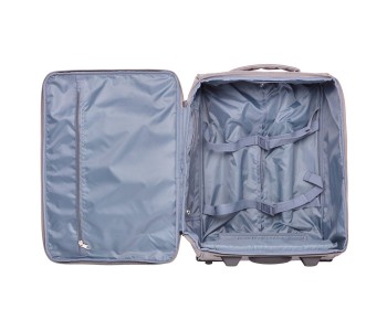Сучасні матеріали і якість виготовлення об'єдналися в моделі дорожньої сумки на колесах Foldable 34 Grey від компанії TravelZ, а простота дизайну і її функціональність роблять сумку незамінною в коротких подорожах і ділових поїздках. Наявність великої кишені на лицьовій частині сумки для швидкого доступу до документів, планшету або гаманцю. Телескопічна ручка складається в відсік на блискавці. Внутрішній об'єм розділений перегородкою на два відділення і має ремені для фіксації речей всередині. Зовнішні габарити моделі TravelZ Foldable 34 відповідають допустимим розмірам при перевезенні багажу більшості популярних, в тому числі і бюджетних, авіакомпаній (МАУ, SkyUp, WindRose, EasyJet, RyanAir і ін.).
