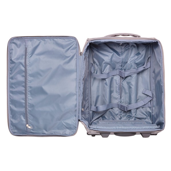 Ергономічна система висувною телескопічною ручки з кнопковим фіксатором дозволяє відрегулювати висоту висувною ручки для додаткового зручності і комфорту користувача. Внутрішній об'єм розділений перегородкою на два відділення і має ремені для фіксації речей і додаткові кишені.