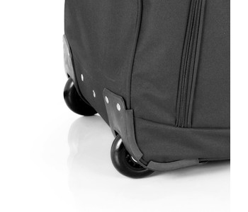 Сумка оснащена парою надійних роликових коліс. Колеса виготовлені з високотемпературного термопластичного поліуретану (TPU). Матеріал володіє міцністю порівнянної з пластиком, гнучкістю силікону, а так само має підвищену стійкість до перепадів температур. Відмінною особливістю коліс з TPU матеріалу є зниження шуму до мінімуму при коченні валізи по нерівній поверхні. Завдяки стійкості до стирання матеріал коліс відрізняється тривалим терміном експлуатації.