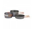 Миття посуду після приготування їжі в кемпінгу - це досить тривалий і виснажливий процес. А часом в поході, при дефіциті води, це практично неможливо. Однак з набором алюмінієвого посуду Vango 4 Person Non-Stick Cook Kit, що має антипригарне покриття - все стає набагато простіше. Досить використовувати невелику кількість води, м'яку мочалку і, при необхідності, миючий засіб. Набір посуду Vango 4 Person Non-Stick Cook Kit спочатку призначений для чотирьох чоловік і складається з двох каструль з ручками і кришками різного діаметру, сковорідки з ручкою і чотирьох чашок.