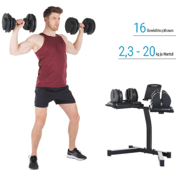 Новий HAMMER Dumbbell Beast покінчив з усім цим. Розумний набір гантелей дуже швидко і легко налаштовується; Найкраще співвідношення ціни та якості серед систем гантелей Smartlock. Для цього потрібно дуже мало місця, а зміна вправ виконується набагато швидше, тому ви можете більш ефективно використовувати свій час в домашньому тренажерному залі, що призводить до набагато більш цілеспрямованим тренуванням.