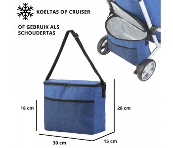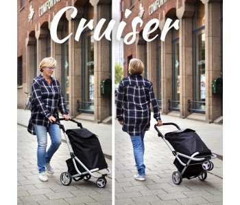 Розкішна сумка-візок ShoppingCruiser 3 Wheels для шопінгу - незамінна помічниця в кожному будинку. Дана модель прослужить довгі роки при цьому, зробить кожну поїздку за покупками максимально комфортною. Особливість сумки-візки ShoppingCruiser 3 Wheels в її підвищеної стійкості і бездоганною маневреності. Конструкцією шасі передбачено трьохточкову опору коліс, завдяки чому сумка-візок сама по собі стійка, а так само може служити користувачеві додатковою опорою при ходьбі. Передня пара коліс має можливість незалежного розвороту на 360 °, що дозволяє легко маневрувати при русі. Сумка-візок легко керована в процесі транспортування, як перед собою, так і за спиною. Ручка з кнопковим фіксатором має регулювання нахилу по висоті. З огляду на зростання користувача, ручка може бути відповідно відрегульована для додаткової зручності і комфорту в процесі експлуатації, що дуже важливо для людей похилого віку, мам з дітьми, людей невисокого зросту. Знімна 7 літрова ізотермічна сумка збереже молочні та заморожені продукти тривалий час.