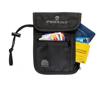 Ferrino Anouk Black - спеціальна потайна сумка для документів, яка дозволяє в походах, поїздках зберігати паспорта, банківські картки, ключі, смартфон і гроші при собі, а також захистити банківські карти або електронний пристрій від крадіжки грошей та інформації за допомогою RFID- захисту. Сумка дуже тонка, її без проблем можна носити під одягом. Оскільки сумка безпосередньо може контактувати з шкірою - для її виробництва обраний натуральний екологічний матеріал - бавовна, а зворотна сторона зроблена сітчастої. Матеріал досить міцний, оскільки має структуру переплетення ripstop. Сумка має зовнішню гидрофобную просочення, що підвищує захищеність речей від промокання. Нашийний шнурок плоский і порожнистий, завдяки чому не натирає шию. Його довжина регулюється фіксатором. Сумка має чотири кишені, в яких без проблем можна розмістити паспорт, шестидюймовий смартфон і інші важливі дрібниці.