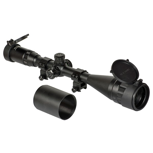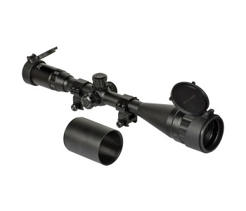 В комплектацію прицілу включені дюймові кріпильні кільця з чотирма затискними і стопорними гвинтами. Кільця мають кріплення на планку Weaver /Picatinny. Захисна бленда накручується замість с'емногог кільця на об'єктиві і захищає оптику від сонячних відблисків і опадів.