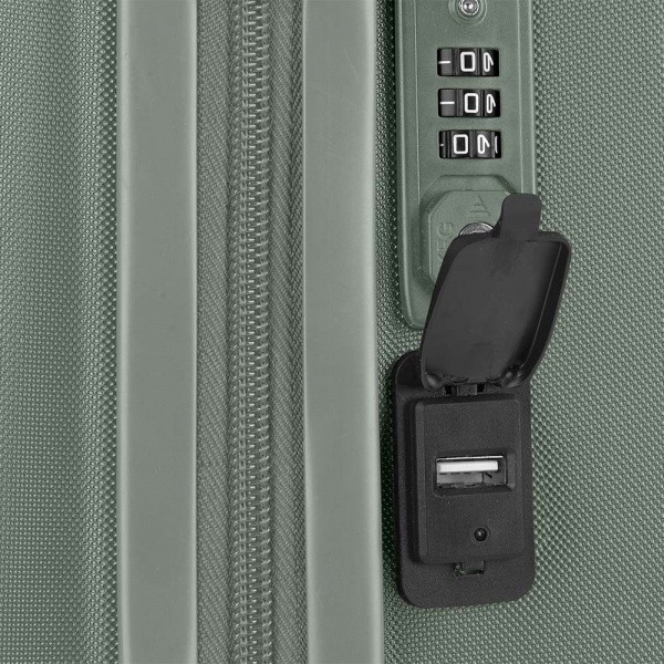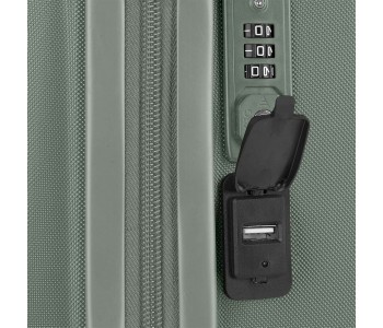 Колекція сучасних валіз Gabol Vermont виконана за останніми тенденціями моди з використанням технічних новинок. Вбудований USB-порт дозволить вашому пристрою завжди бути зарядженим, а корпус виготовлений з міцного і довговічного ABS-пластика, він збереже Ваші комплекти речей в ідеальному стані. Внутрішній об'єм розділений перегородкою на два відділення і має ремені для фіксації речей всередині. Чемодан обладнаний фірмовим кодовим замком з функцією митного огляду TSA. Чемодан легкий, маневрений і зручний для транспортування.