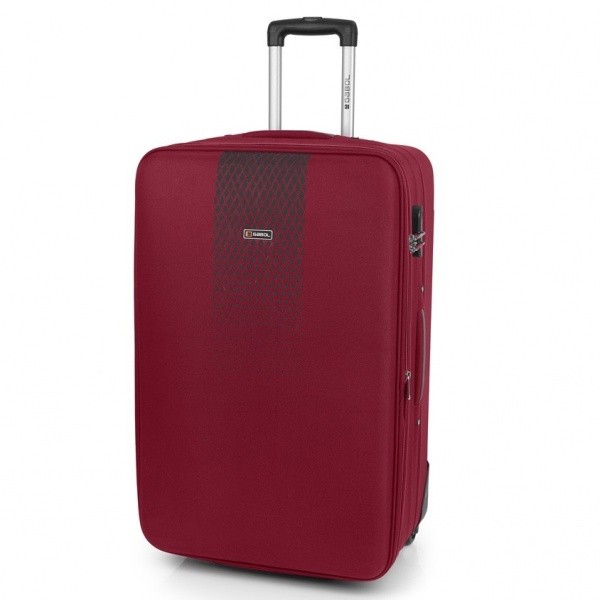 Чемодан Gabol Roll оснащений надійною парою роликових коліс з TPU матеріалу, висувною телескопічною ручкою і вбудованим кодовим замком. Каркас дна легкий і міцний завдяки стільникового структурі будови. Внутрішній об'єм розділений перегородкою на два відділення і має ремені для фіксації речей всередині. Чемодан легкий, маневрений і зручний для транспортування.
