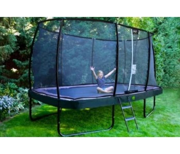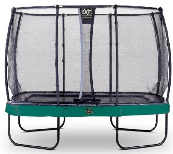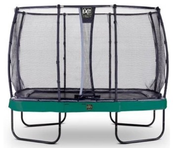 Батут EXIT Elegant Premium 214х366 cm green з сіткою безпеки Deluxe - прямокутний батут вищої якості з сіткою безпеки Deluxe, кращий з серії батутів Elegant із захистом на пружинах сірого кольору і зеленою спідницею. Він безпечний, гарний, дуже зручний, має супер міцну раму, легко собірается.