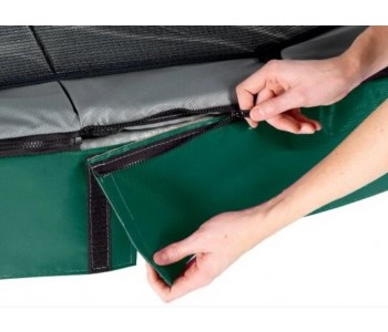 Спідниця оббивки довше і наповнення оббивки товщі в порівнянні зі стандартними EXIT Elegant батутами. А додаткове товсте покриття ПВХ на підкладці забезпечує більш тривалий термін служби.