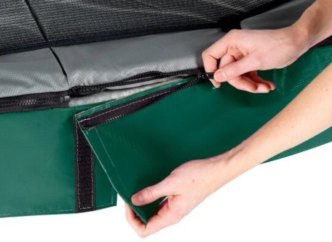 Зелену спідницю можна швидко прикріпити до захисного краю за допомогою блискавки.